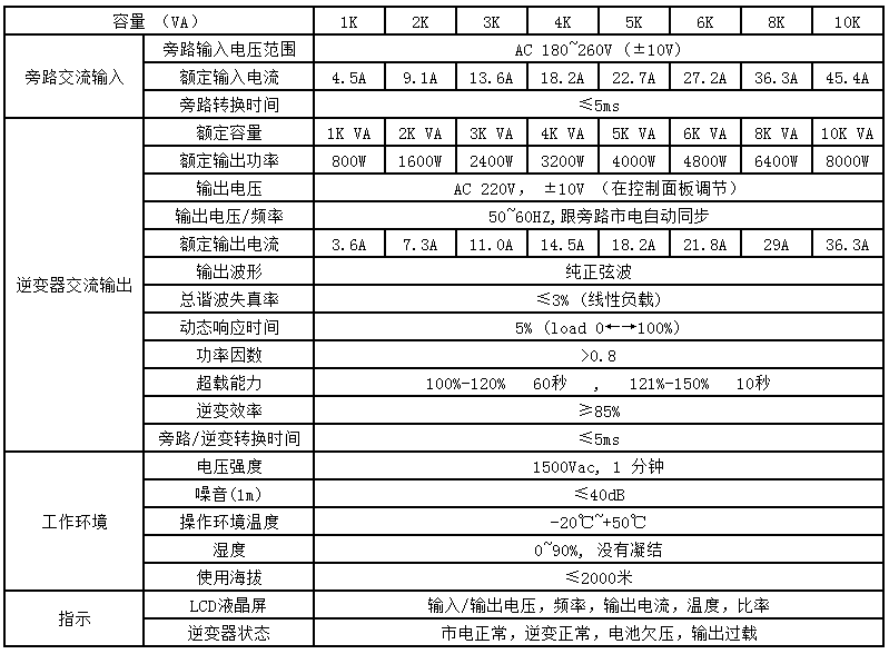 5組無源干接點,分別用于直流輸入故障,交流輸入故障,過載報警,旁路信息,輸出故障(標準配置);