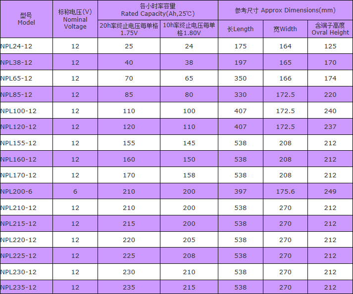 NPL系列電池,采用特殊板柵合金、極低的電解液比重,為特別設(shè)計(jì)的長壽命電池。