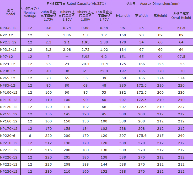 ≥24Ah    10年(20℃)/ 6年 (25℃)